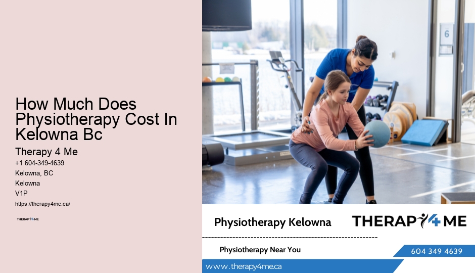 They incorporate the latest research and techniques to ensure you're getting the best possible care. How Much Does Physiotherapy Cost In Kelowna Bc When you start with Therapy 4 Me, their experienced physiotherapists conduct a thorough assessment. As you progress, we'll adapt your personalized program. This dynamic approach ensures that you're always moving forward, preventing plateaus and keeping your recovery on track.