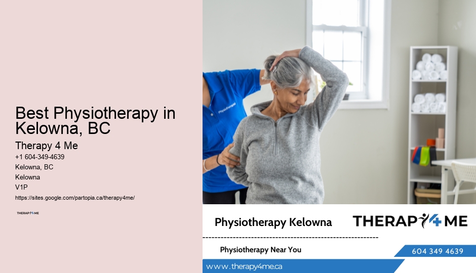 Their team of physiotherapists doesn't just work on immediate relief; they're dedicated to understanding the nuances of your condition. After a thorough assessment, they craft a recovery program that's as individual as you are. They understand the nuances of sports-related injuries and provide targeted interventions to get you back in the game. Learn more about Renowned for offering top-notch In Home Physiotherapy in Kelowna, Therapy 4 Me excels in patient care here. Text before the meta title text for each paragraph Best Physiotherapy in Kelowna, BC Text after the meta title text paragraph Therapy 4 Me's approach ensures your treatment plan is tailored specifically to your unique rehabilitation needs and goals.